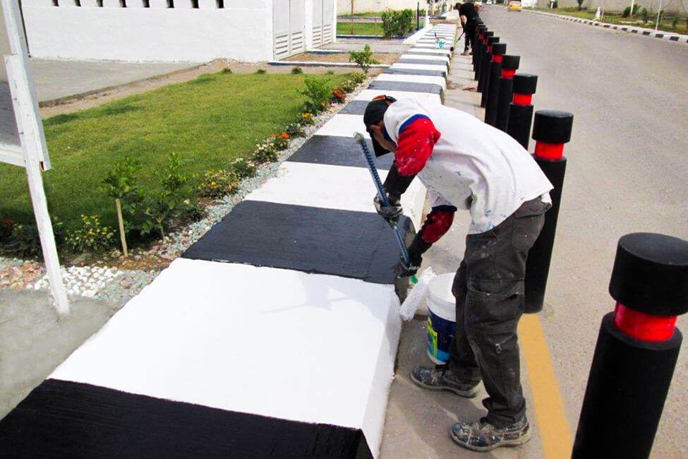 The outer layer of the road was laid down anew and lines separating different lines of traffic were painted on the top. Moreover, for the security of pedestrians, black-and-white pavements separated from the traffic with bollards were created in key areas.
